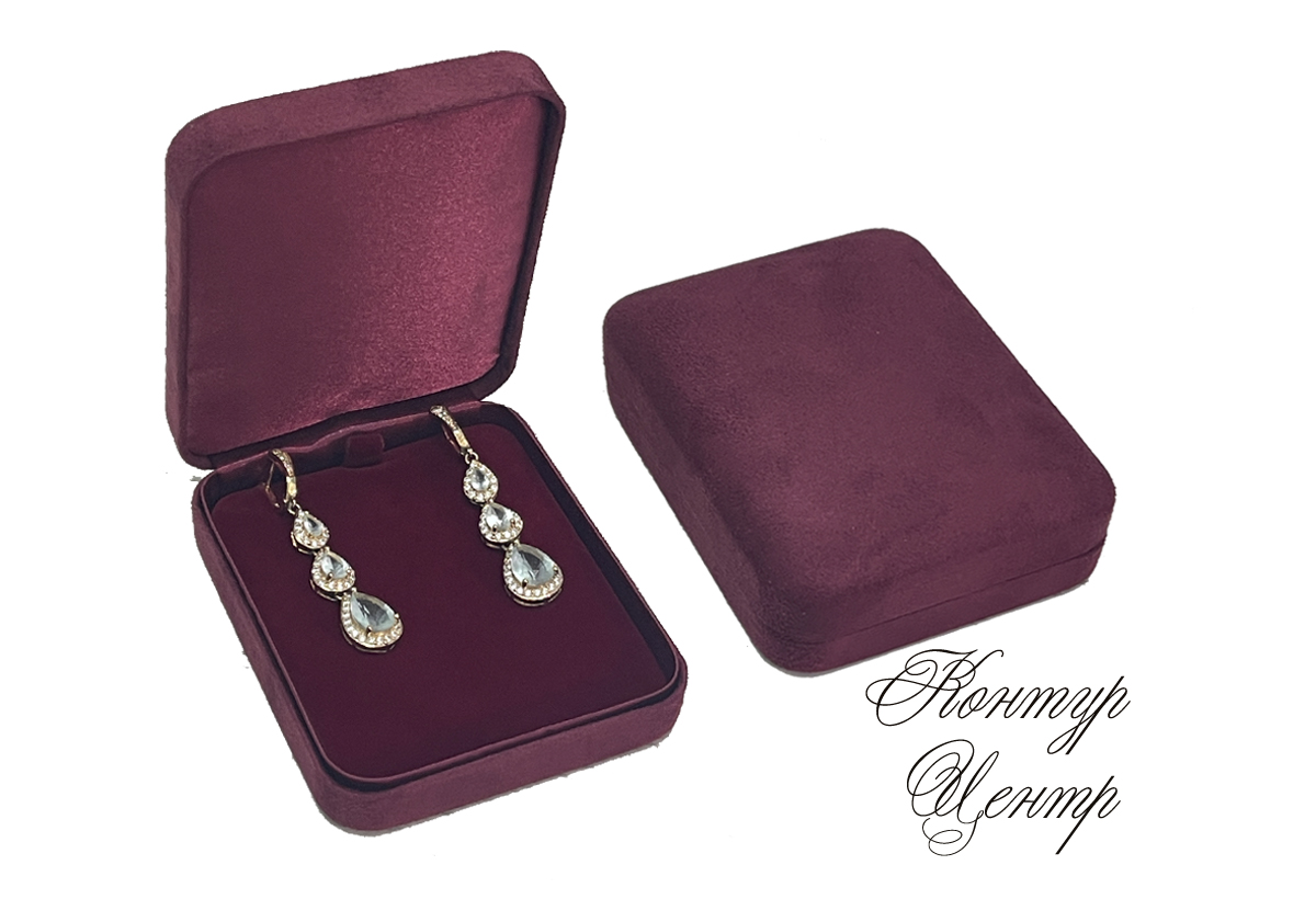 Футляр идеально подойдет для демонстрации серег или подвески. Красивый бордовый цвет нубука придаст стиль и благородство дорогим ювелирным украшениям.