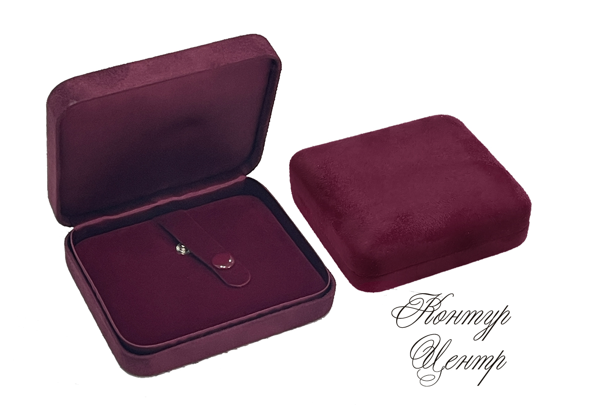 Футляр идеально подойдет для демонстрации и хранения браслета. Красивый бордовый цвет нубука придаст стиль и благородство дорогим ювелирным украшениям.