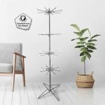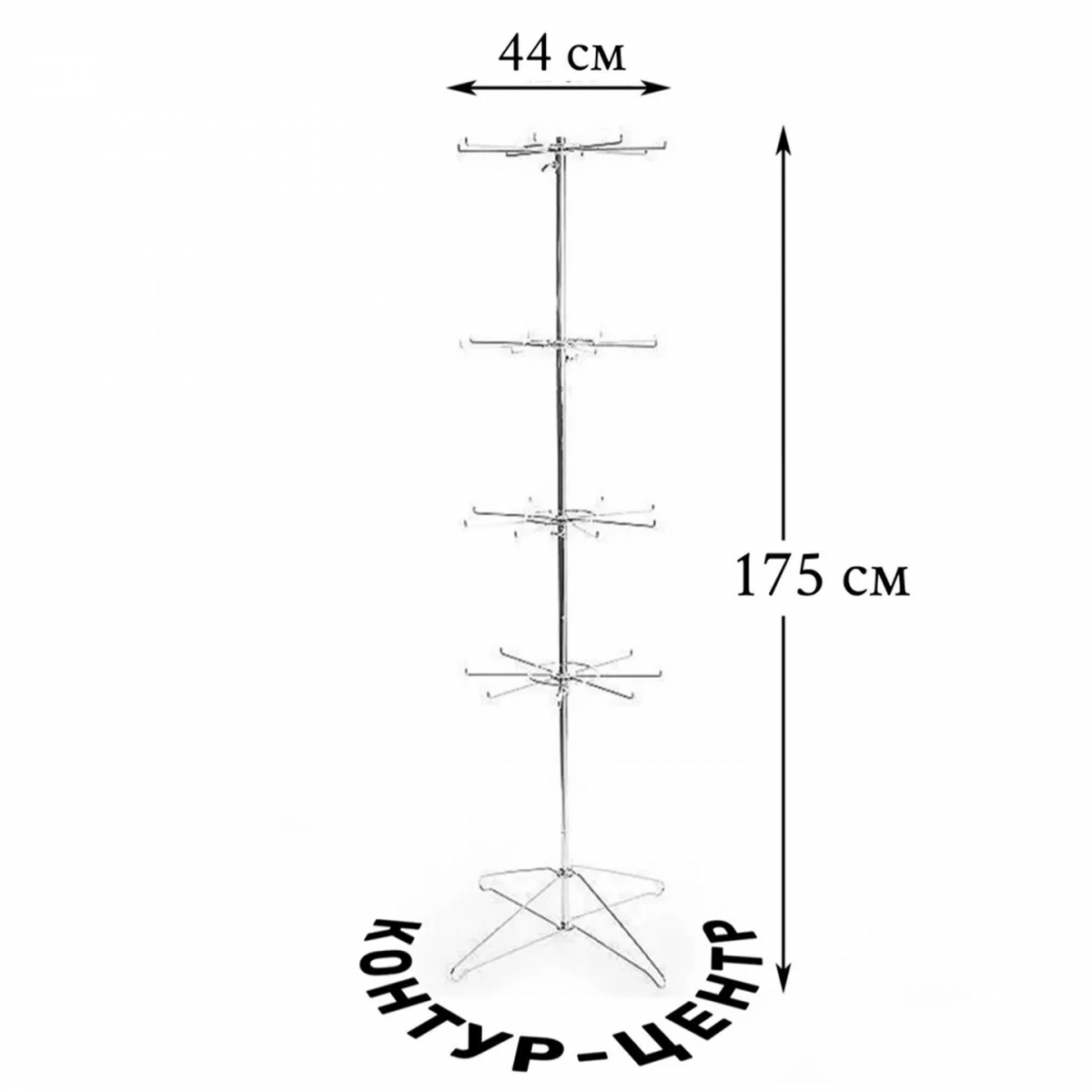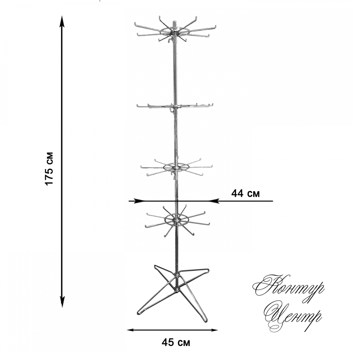 это универсальный и стильный аксессуар для хранения и демонстрации галстуков, ремней, шарфов, украшений и т.д. Эта стойка - вертушка напольная оснащена че тырьмя ярусами, что позволяет разместить на ней множество товаров, брелков и других аксессуаров. Благодаря своей крутящейся конструкции, стойка обеспечивает удобный доступ к каждому изделию, позволяя легко выбрать нужный товар.